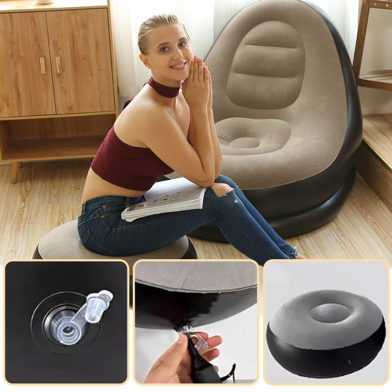 De Thickened Inflatable Bean Bag Chair voor volwassenen, compleet met voetenbankje, is het perfecte cadeau dat comfort, stijl en functionaliteit combineert. Verhoog je ontspanningservaring met deze innovatieve opblaasbare stoel die is ontworpen voor ultiem comfort en gemak.