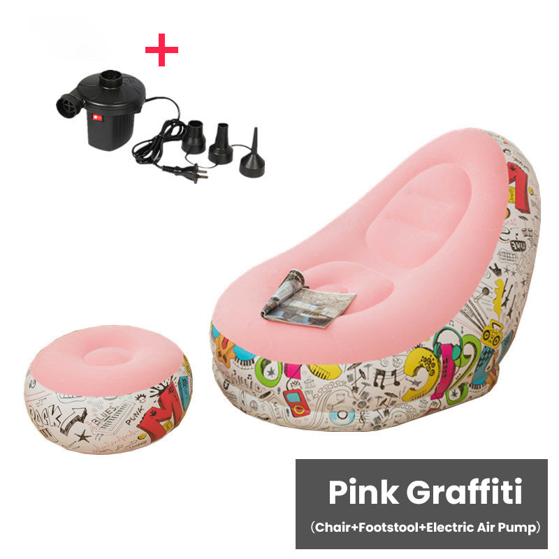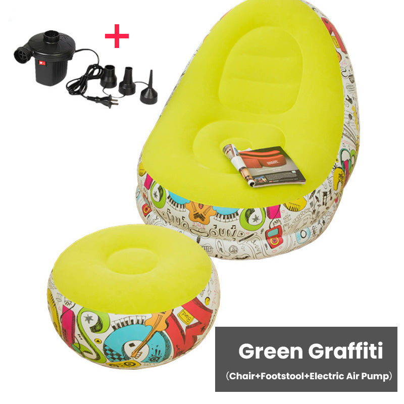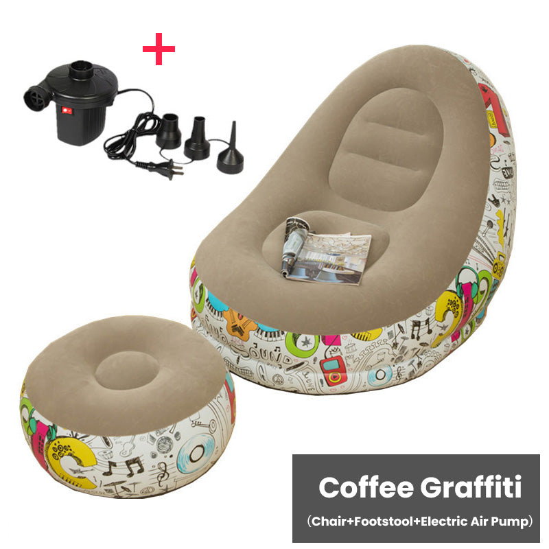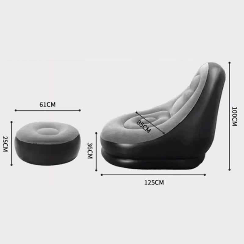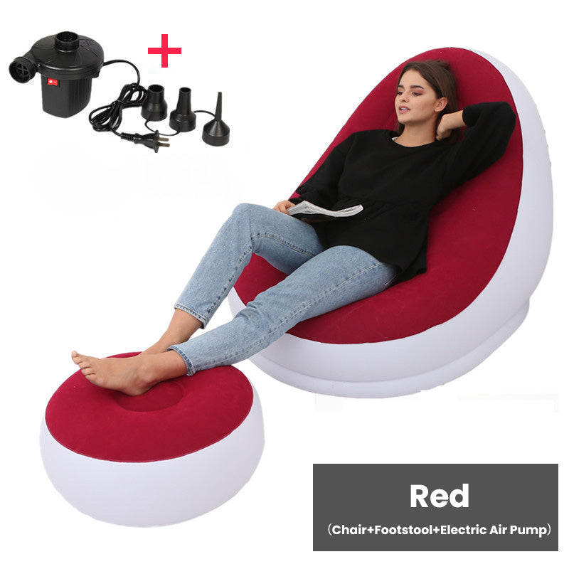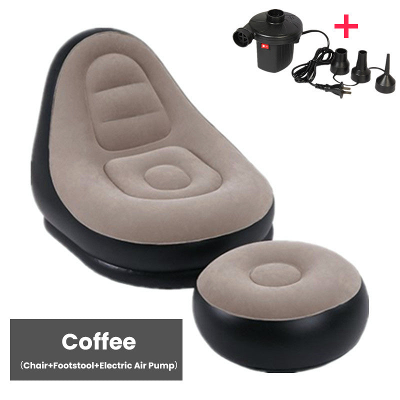 Complete setsĀ - Dit attente cadeau wordt geleverd als een complete set, inclusief de stoel, poef en een elektrische luchtpomp. Met de poef kun je je voeten omhoog schoppen en genieten van maximaal comfort, waardoor je vrije tijd een luxueuze ervaring wordt. De meegeleverde elektrische luchtpomp zorgt voor probleemloos oppompen, zodat je in een mum van tijd je relaxplek kunt inrichten.