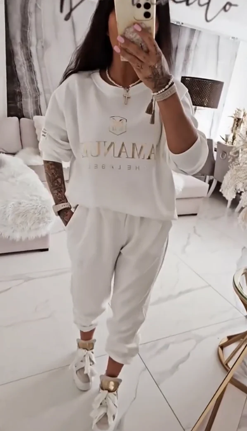 Stijlvol en praktisch – Deze set heeft een monogram en een losse pasvorm, waardoor hij gemakkelijk te combineren is met elke garderobe. Of je nu onderweg bent of gewoon een eenvoudig, stijlvol item nodig hebt, je ziet er altijd stijlvol uit.