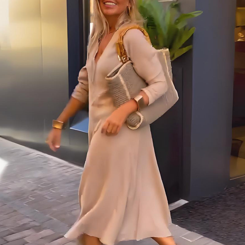 🌞 VOOR ELKE GELEGENHEID – Van kantoor tot weekend: deze jurk is dankzij zijn subtiele chic geschikt voor meerdere gelegenheden.