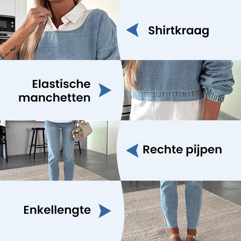 💥Dames 2-delige spijkerset met enkellange jeans