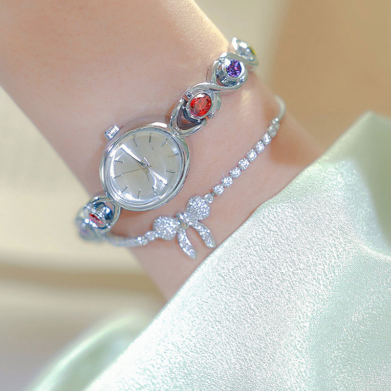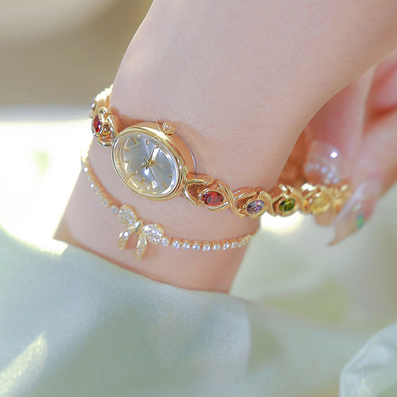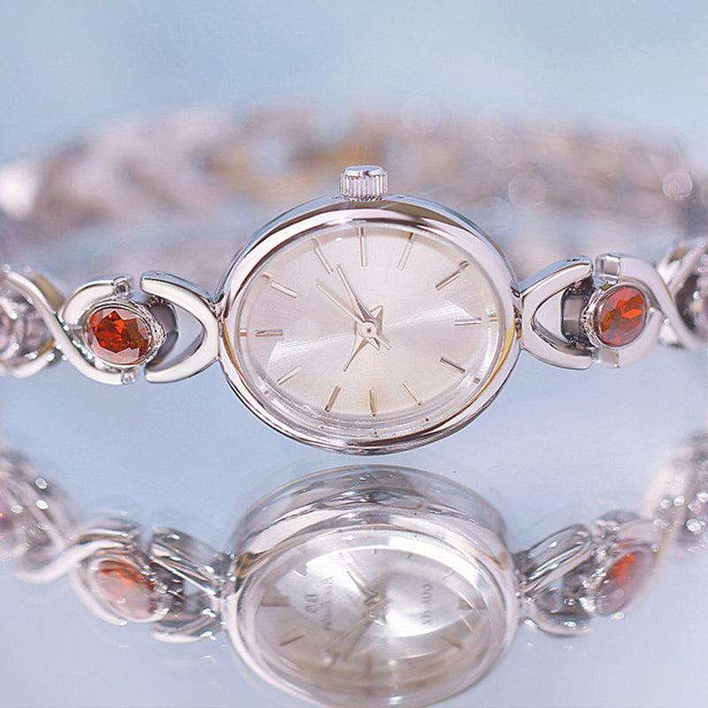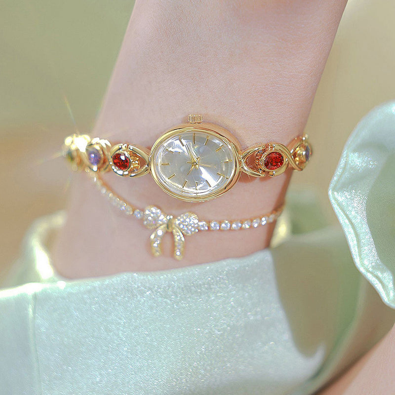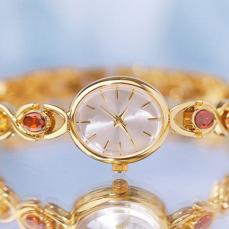 BANDVERSIERING: De band is versierd met unieke decoraties die een vleugje vintage charme en unieke flair toevoegen. Dit stijlvolle detail verhoogt de esthetiek van het horloge, waardoor het een modieus accessoire is dat bij verschillende outfits en gelegenheden past.