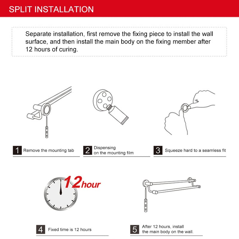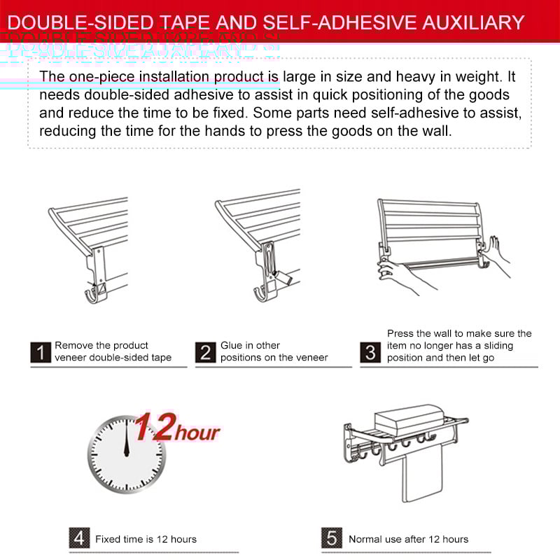 Toepassing: Matglas, marmer, gelakt hout, zachte metalen platen, tegels, mozaïeken. Het is het beste om een onzichtbare muurbevestiging te gebruiken.