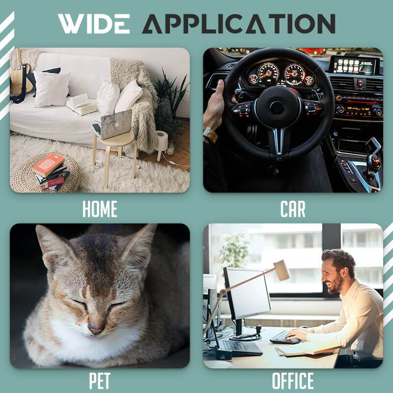 Perfect te gebruiken in huis of auto voor het reinigen van stof van bureaublad, laptop, toetsenbord, ventilatieopeningen van luchtcontainers of stof in kleine openingen, sigarettenas in autoaansteker, broodkruimels, papiersnippers op bureau, haren van huisdieren, deeltjes in make-uptassen, enzovoort.
