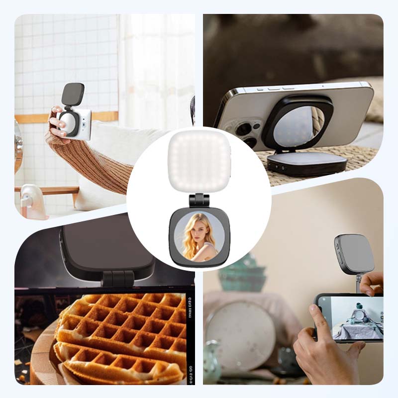 ONTWERP MET DRIE FUNCTIES - DRIE-IN-ÉÉN APPARAAT – Combineert drie essentiële functies in één apparaat. Het kan worden gebruikt als een professionele invullamp, die verlichting van hoge kwaliteit biedt met meerdere modi en helderheidsniveaus. Daarnaast dient het als een stabiele telefoonstandaard om je apparaat stabiel te houden tijdens het gebruik, ideaal voor videogesprekken, video's bekijken of foto's maken. Tot slot heeft het een geïntegreerde spiegel voor snelle touch-ups of make-up controles, waardoor het ongelooflijk handig is voor gebruik onderweg.