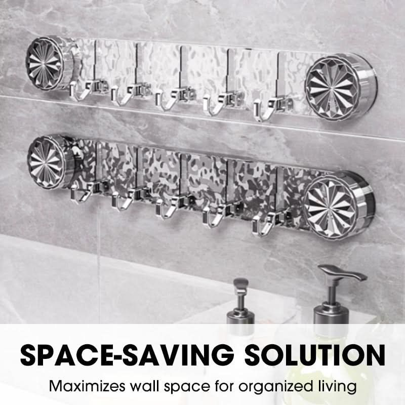 OPVOUWBAAR ONTWERP - De haak kan plat tegen de muur worden gevouwen als hij niet wordt gebruikt, waardoor de ruimte optimaal wordt benut. Perfect voor kleine appartementen of drukke ruimtes, hij kan netjes worden opgeborgen zonder aan functionaliteit in te boeten. De droom van een minimalist voor een georganiseerd leven.