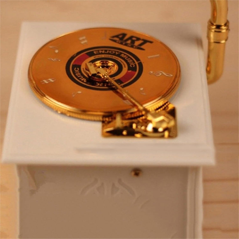 REALISTIC DESIGN: As the music plays, the vinyl on the gramophone spins, adding an extra layer of authenticity to the experience.