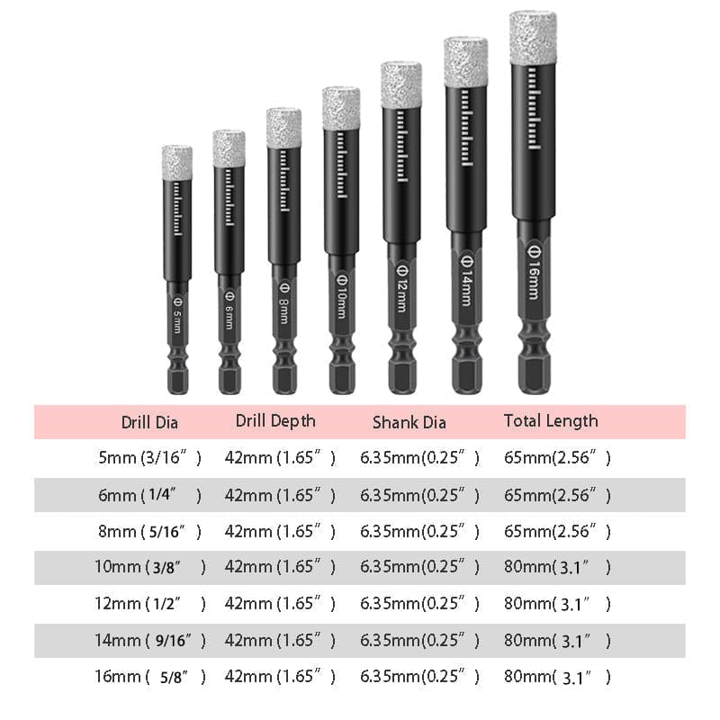 VEELZIJDIG GEBRUIK - Perfect voor het droog boren van gaten door harde porseleinen tegels, keramiek, badkamertegels, graniet, marmer, metselwerk, beton, glas en hard plastic. Het gebruik van water kan de levensduur verlengen.