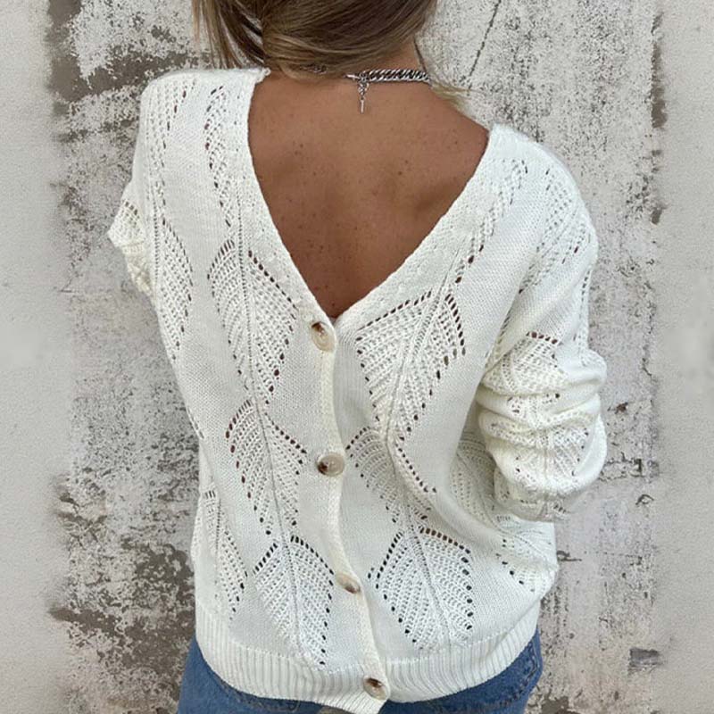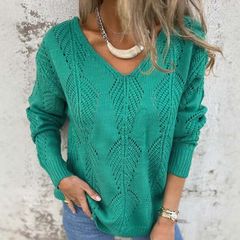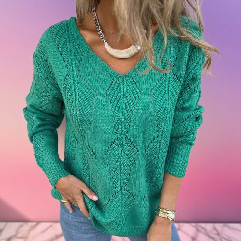 💖SISTE DAGS SALG 50 % RABATT🥰Omkeerbare trui met opengewerkt patroon en V-hals