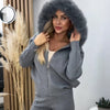 Pakket bevat: 1 * Dames hoodie met pluche kraag en ritssluiting & joggingbroek set