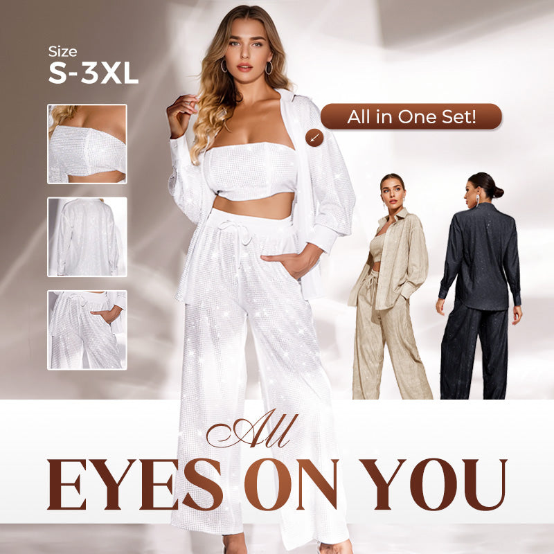✨Paillettenblazer en wijde broek voor dames (3-delige set)