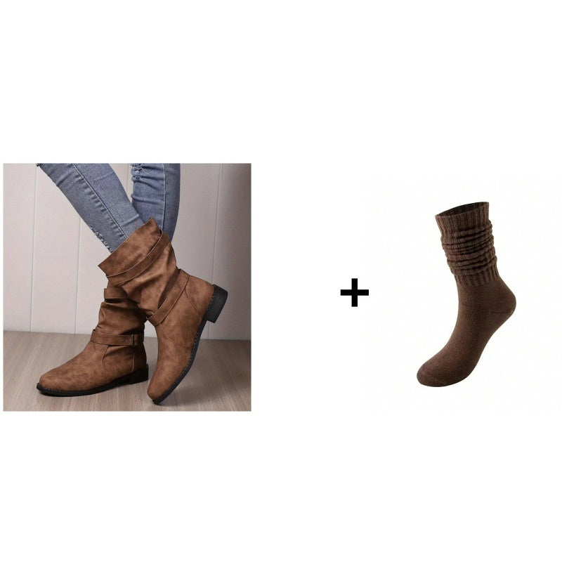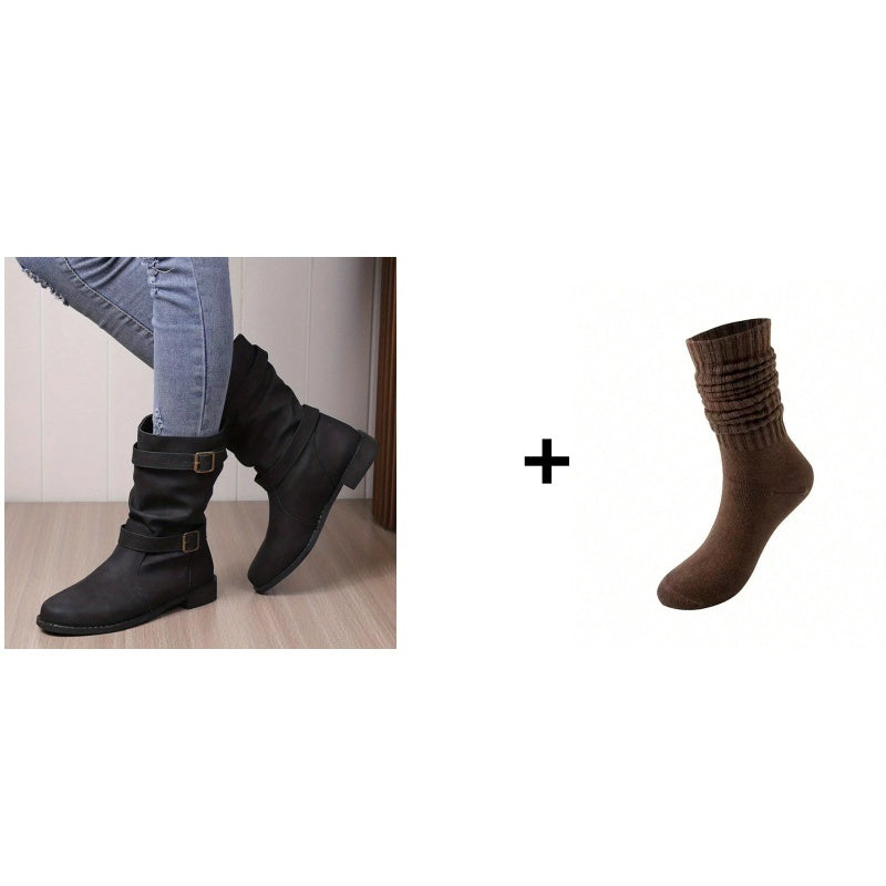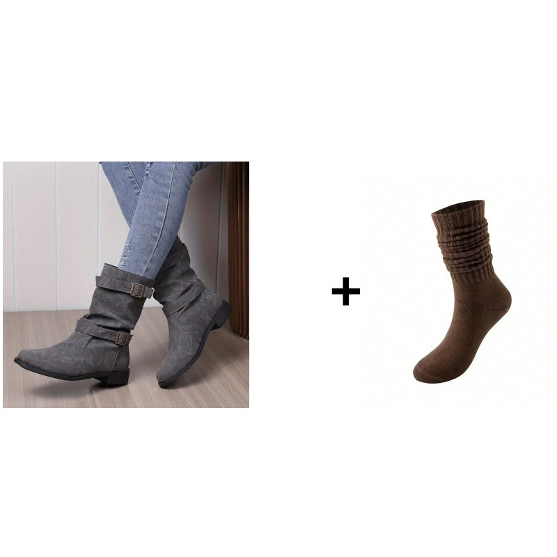 Breng de westerncharme terug met onze vintage-geïnspireerde, casual western enkellaarsjes met gespbandjes – een combinatie van tijdloze stijl en modern comfort. Deze laarzen zijn gemaakt van hoogwaardig kunstleer en hebben een rustieke maar chique uitstraling, perfect voor de modieuze looks van dit seizoen.