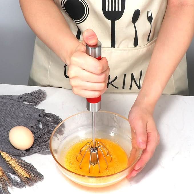 Bespaart moeite en krijgt het werk veel sneller gedaan dan met de gewone garde. Geen elektriciteit of batterij nodig. Druk eenvoudigweg de hendel naar beneden en de roestvrijstalen messen van de garde draaien. Perfect voor het mixen van sauzen, marinades, eieren, cakebeslag, pannenkoekenmix en nog veel meer!