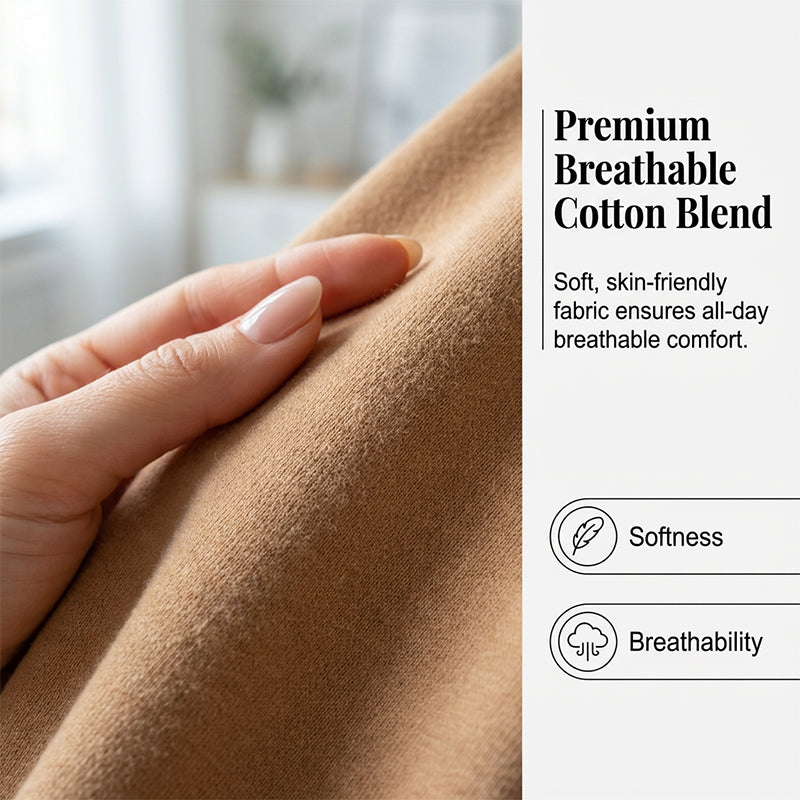 PREMIUM ADEMENDE STOF - Deze jurk is gemaakt van een hoogwaardige, lichtgewicht katoenmix en biedt uitzonderlijke ventilatie en zachtheid. Hij houdt je koel en comfortabel, van ochtendboodschappen tot ontspanning 's avonds.