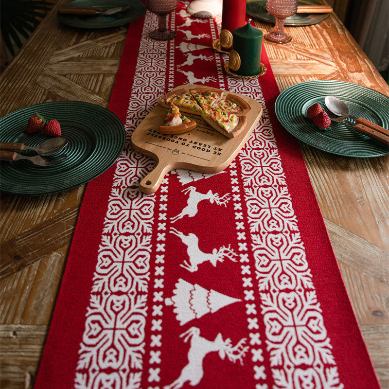 CHARMING CHRISTMAS DESIGN: Deze tafelloper heeft een ingewikkeld vakantieontwerp met klassieke kerstelementen. De levendige rode accenten en feestelijke motieven verhogen meteen de sfeer, waardoor hij perfect is voor vakantiefeesten, diners en bijeenkomsten.
