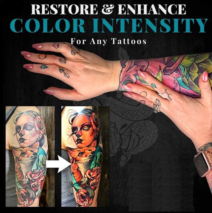 Deze balsem houdt tatoeages van alle kleuren helder en levendig door de kleur naar de volgende huidlaag te trekken en vervaging te voorkomen.