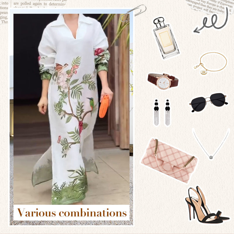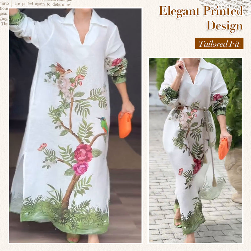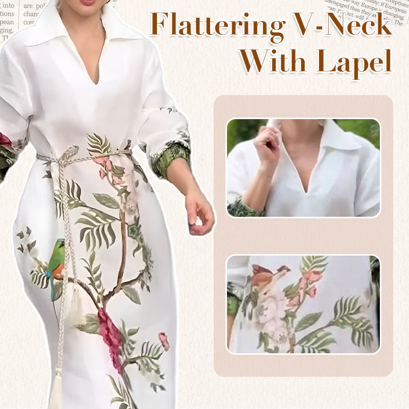 💥Uitverkoop 50% korting🌸Gedrukte jurk met V-hals en lange mouwen